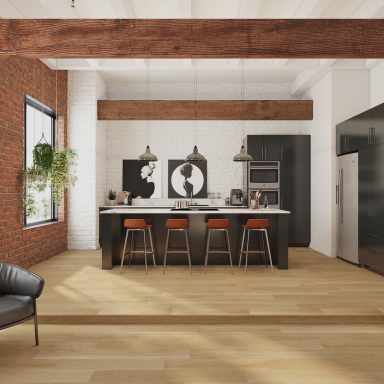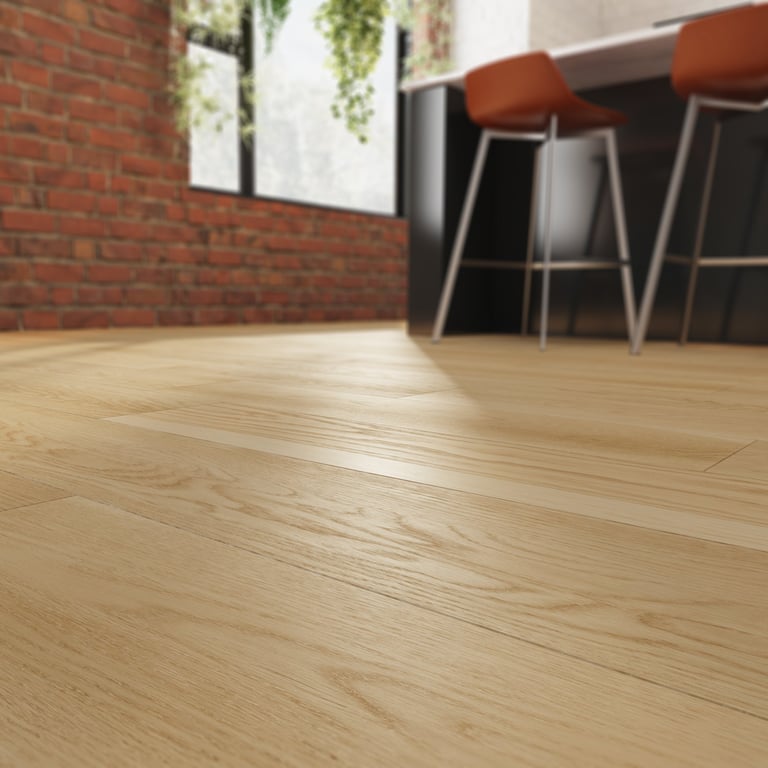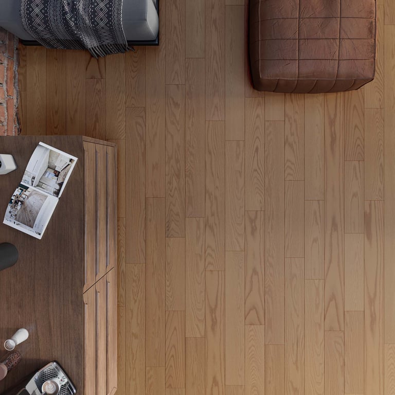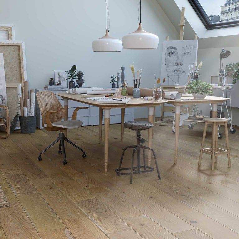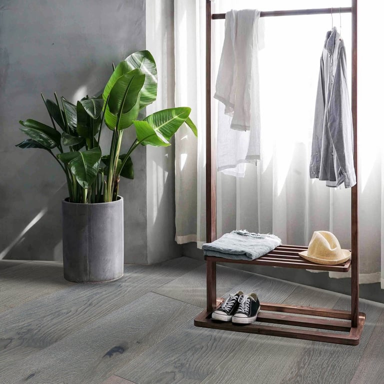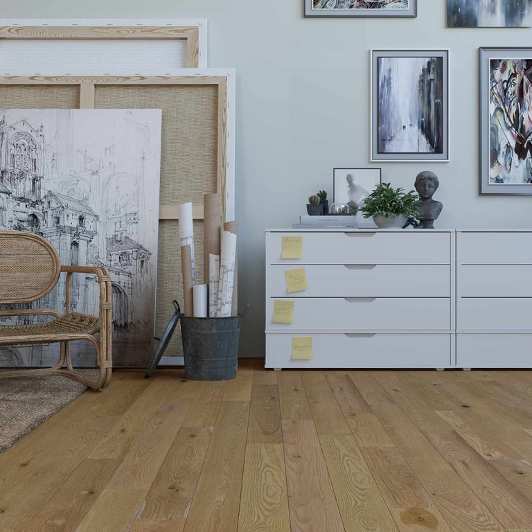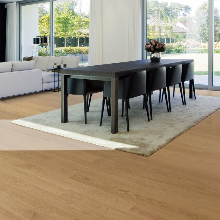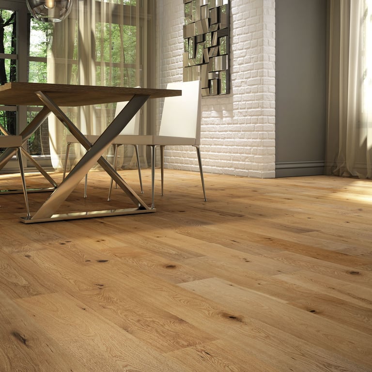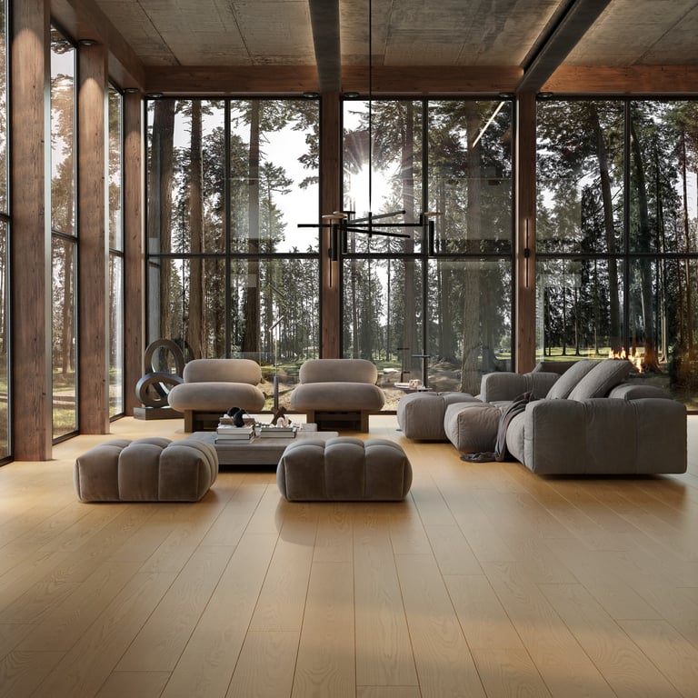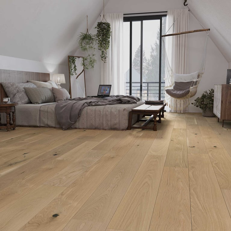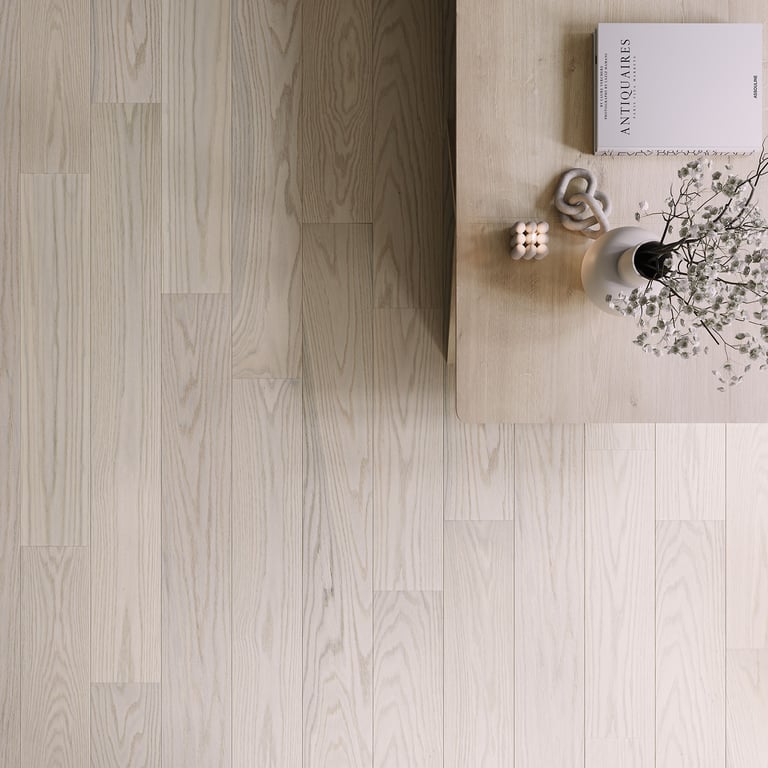 When the homeowner steps inside, it feels like the day drops off their shoulders—quiet, uncluttered, and instantly reassuring. There’s a subtle pride in that first glance, like, “Yep… this is exactly us.” The wide, light-toned planks set that mood: airy but grounded, warm without being yellow, and calm because the finish reads soft and natural rather than glossy or fussy. The gentle grain and barely-there variation keep it feeling real and lived-in, while the long board lines give a steady, forward momentum that makes the entry feel bigger and more intentional.
