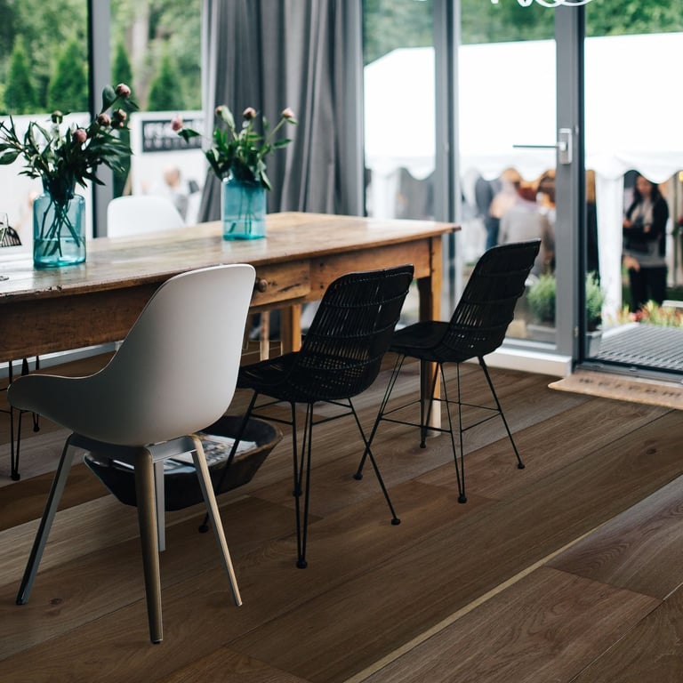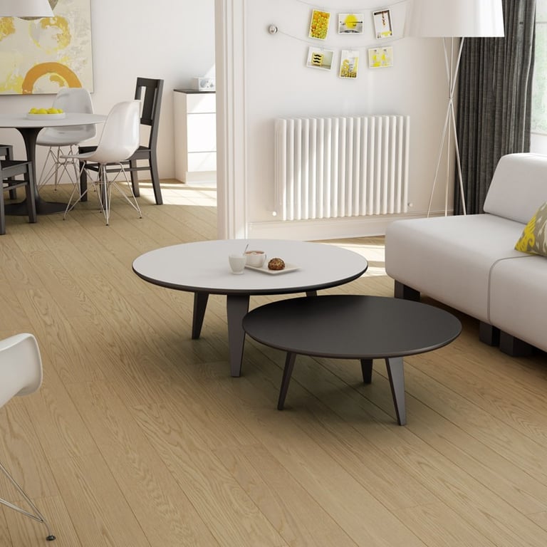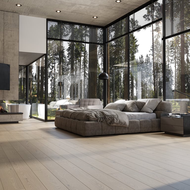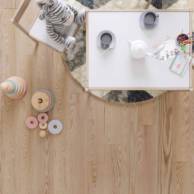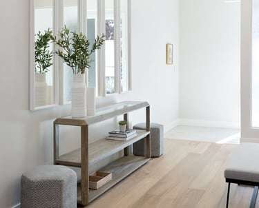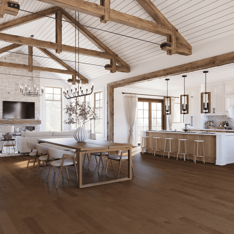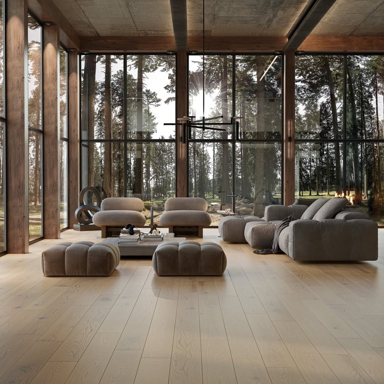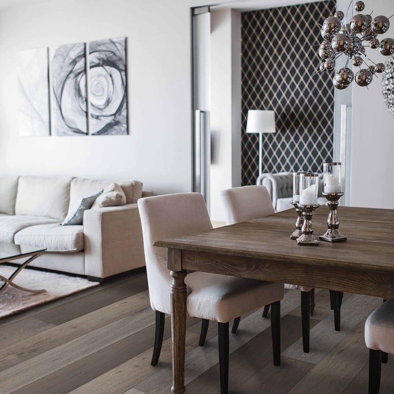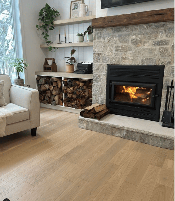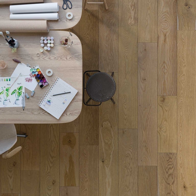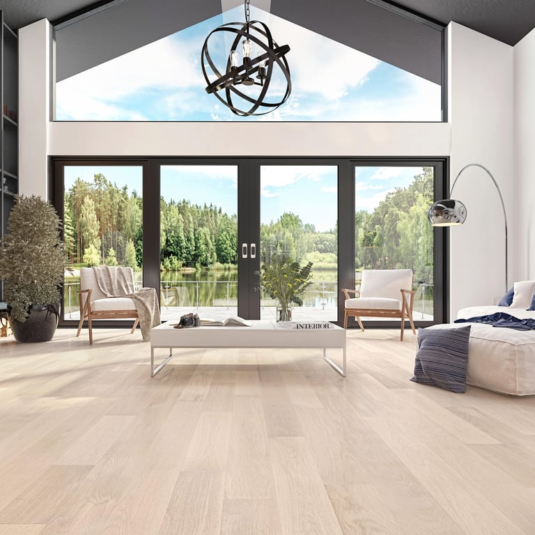 When the homeowner steps inside, it feels like the day drops off their shoulders—quiet, uncluttered, and instantly reassuring. There’s a subtle pride in that first glance, like, “Yep… this is exactly us.” The wide, light-toned planks set that mood: airy but grounded, warm without being yellow, and calm because the finish reads soft and natural rather than glossy or fussy. The gentle grain and barely-there variation keep it feeling real and lived-in, while the long board lines give a steady, forward momentum that makes the entry feel bigger and more intentional.